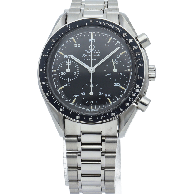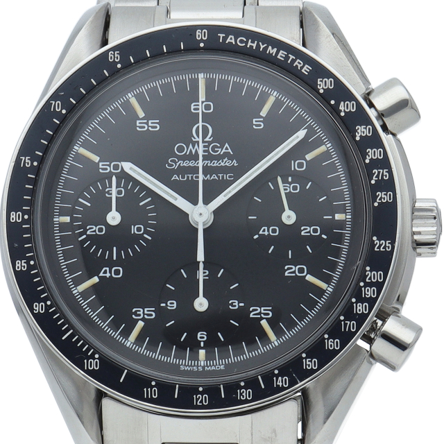 オメガを代表する人気シリーズ「スピードマスター」。プラ風防を使用したレトロな雰囲気かつシンプルにまとまったデザインがスタイルを選ばずにご使用いただけます。