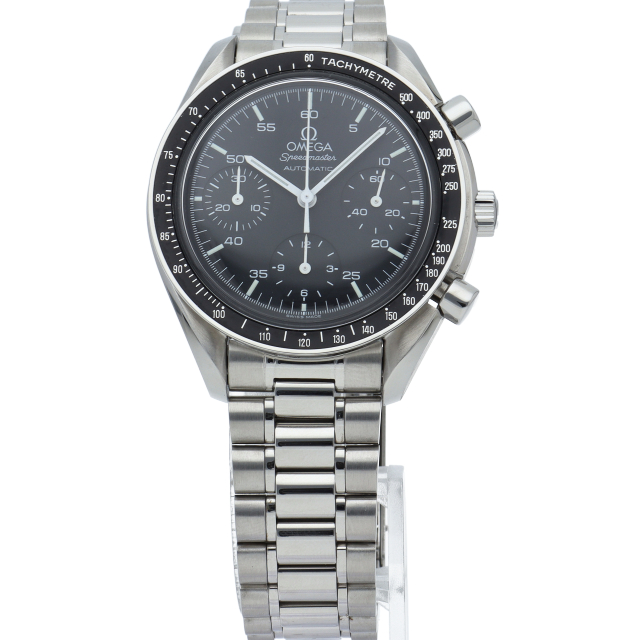 オメガを代表する人気シリーズ「スピードマスター」。プラ風防を使用したレトロな雰囲気かつシンプルにまとまったデザインがスタイルを選ばずにご使用いただけます。