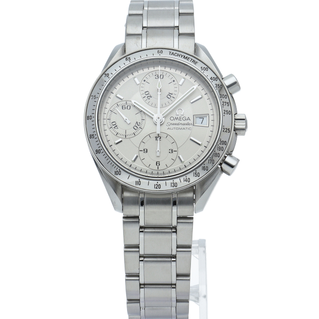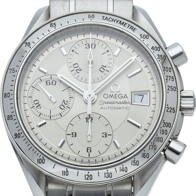 オメガの代表的な人気シリーズ「スピードマスター・デイト」。クロノグラフ・デイト表示機能付きと便利で実用性のある1本です。