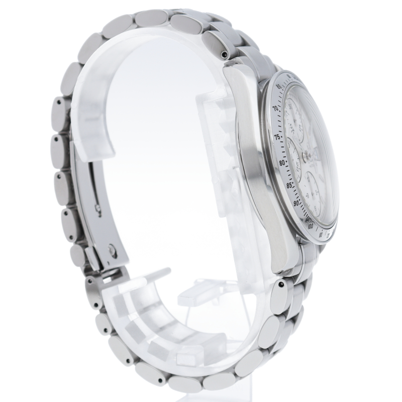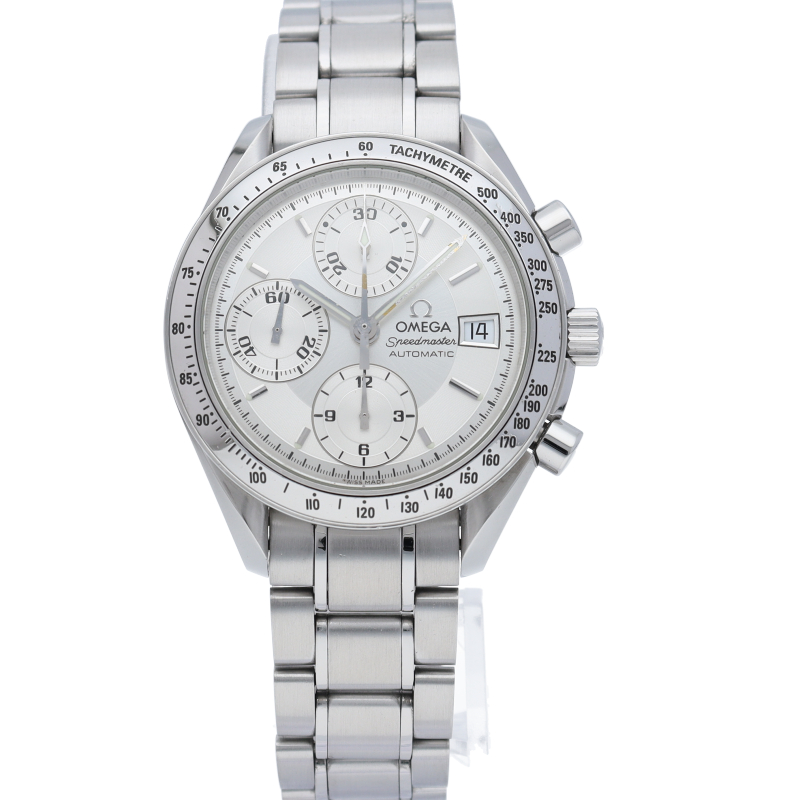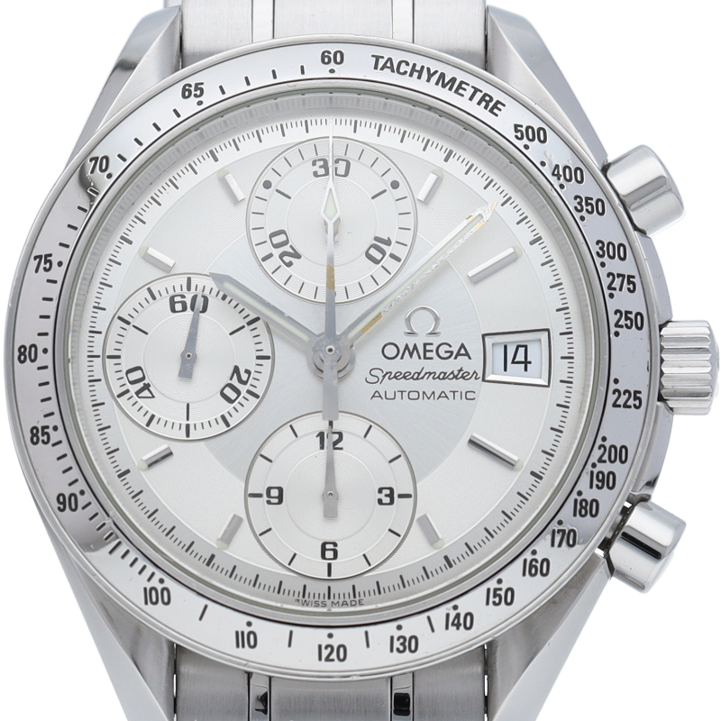 オメガの代表的な人気シリーズ「スピードマスター・デイト」。クロノグラフ・デイト表示機能付きと便利で実用性のある1本です。