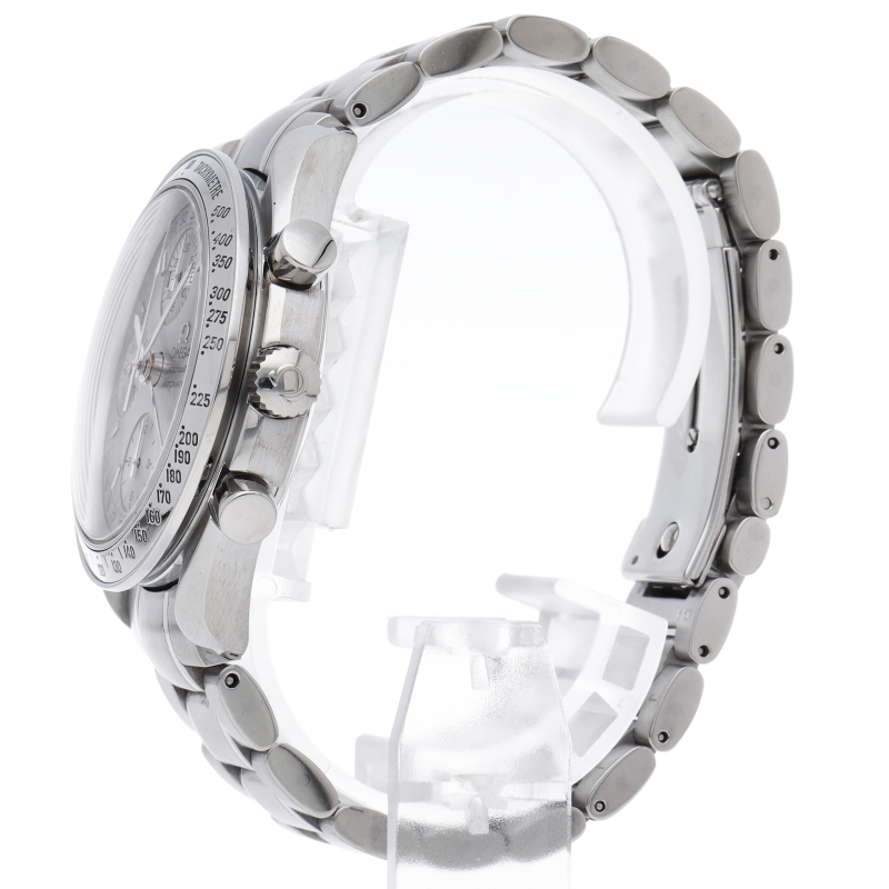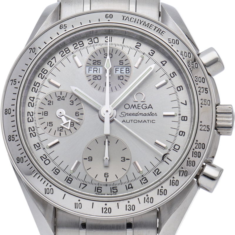 オメガの人気ウォッチ「スピードマスター」。クロノグラフ、月・日・曜日表示機能がついた便利な多機能ウォッチ。