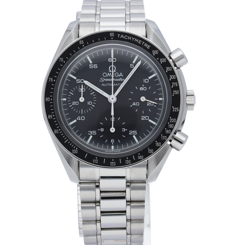 オメガを代表する人気シリーズ「スピードマスター」。プラ風防を使用したレトロな雰囲気かつシンプルにまとまったデザインがスタイルを選ばずにご使用いただけます。