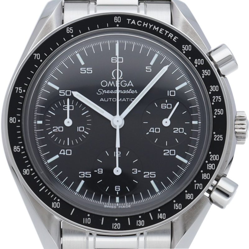 オメガを代表する人気シリーズ「スピードマスター」。プラ風防を使用したレトロな雰囲気かつシンプルにまとまったデザインがスタイルを選ばずにご使用いただけます。