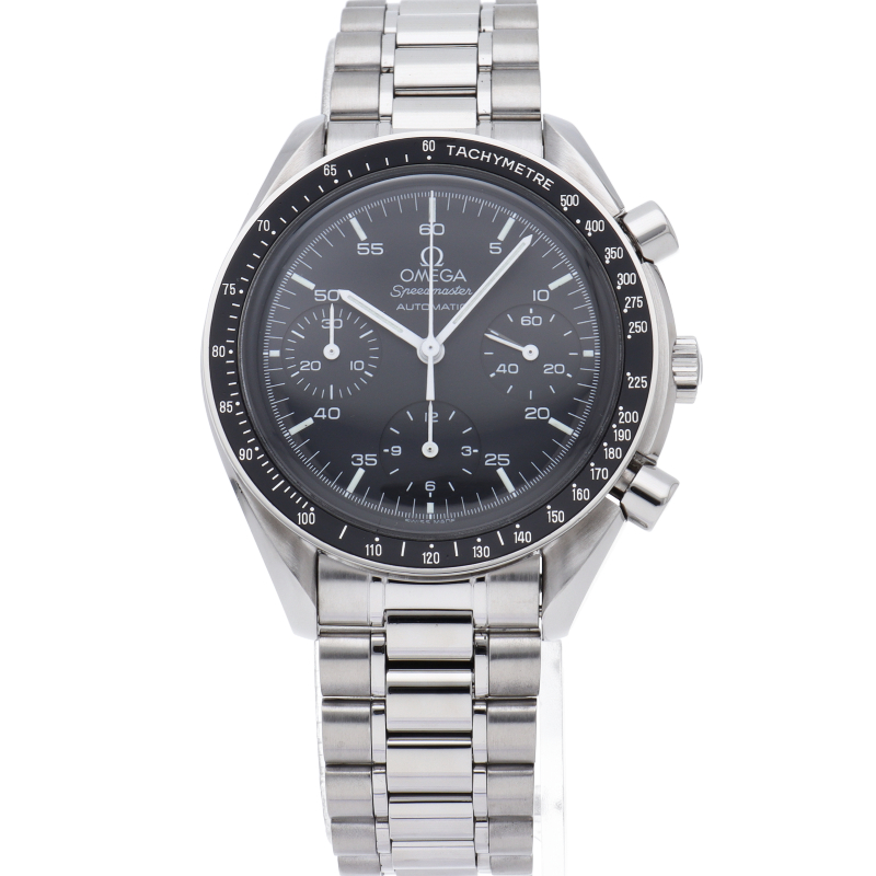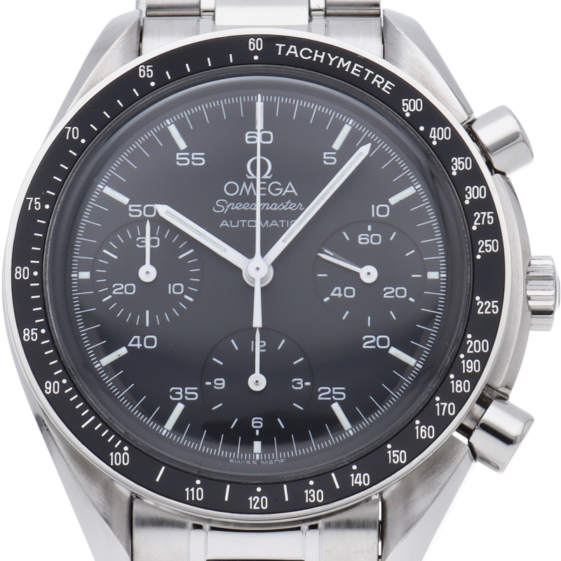 オメガを代表する人気シリーズ「スピードマスター」。プラ風防を使用したレトロな雰囲気かつシンプルにまとまったデザインがスタイルを選ばずにご使用いただけます。
