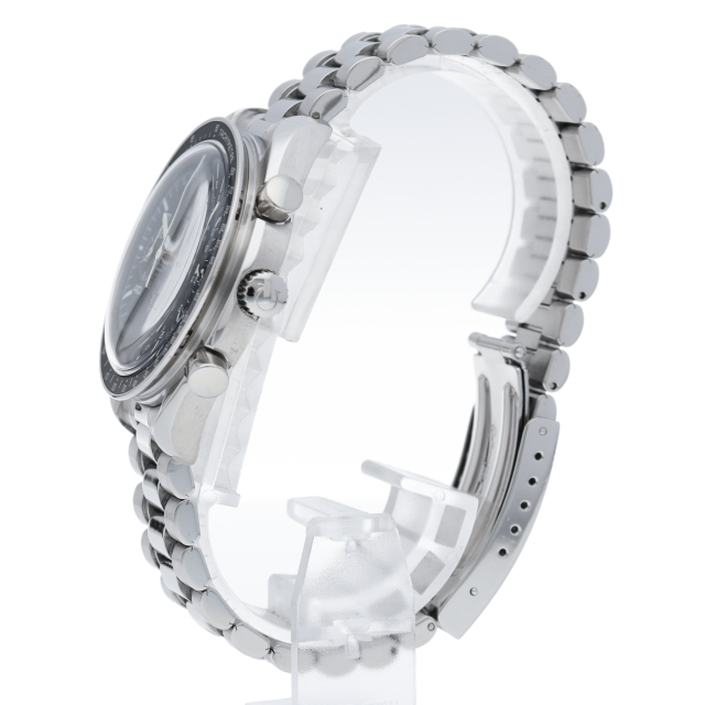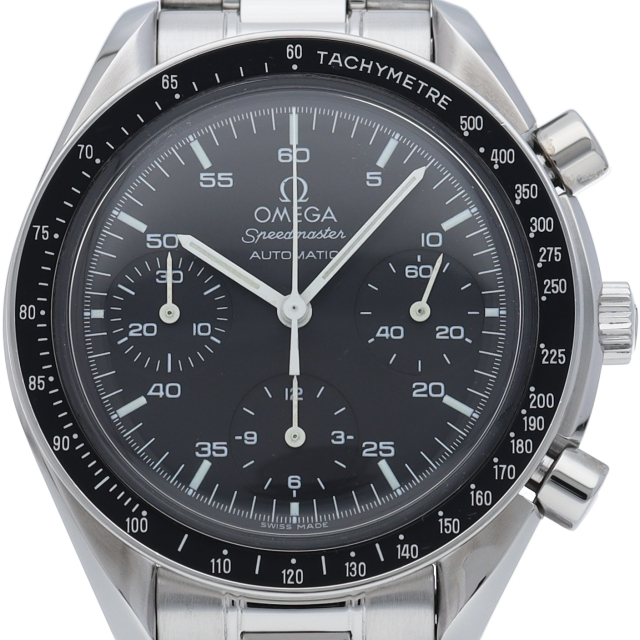 オメガを代表する人気シリーズ「スピードマスター」。プラ風防を使用したレトロな雰囲気かつシンプルにまとまったデザインがスタイルを選ばずにご使用いただけます。