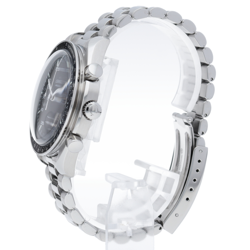 オメガを代表する人気シリーズ「スピードマスター」。プラ風防を使用したレトロな雰囲気かつシンプルにまとまったデザインがスタイルを選ばずにご使用いただけます。
