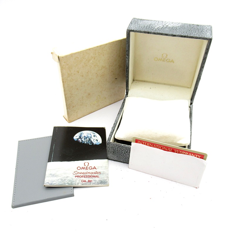 オメガを代表する人気モデルでムーンウォッチとしても有名な1本。シースルーバックから覗ける手巻ムーブメントが特徴的な1本。初期モデルにのみ搭載された金メッキのムーブメントを搭載しております。トリチウム文字盤。Cal.863。