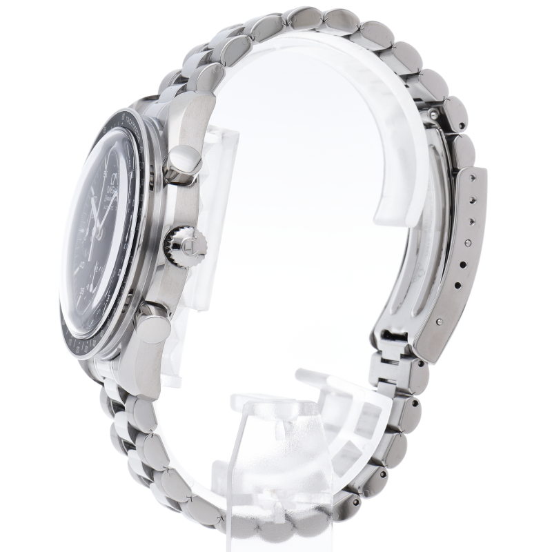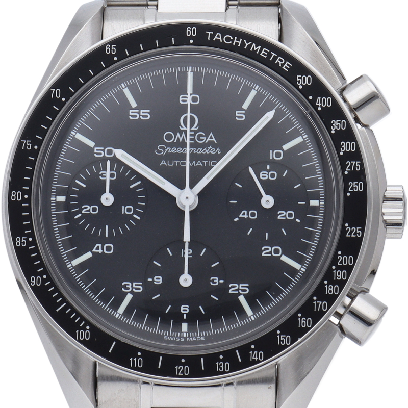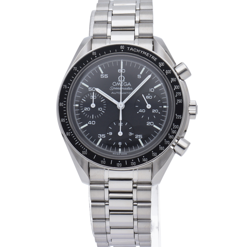 オメガを代表する人気シリーズ「スピードマスター」。プラ風防を使用したレトロな雰囲気かつシンプルにまとまったデザインがスタイルを選ばずにご使用いただけます。