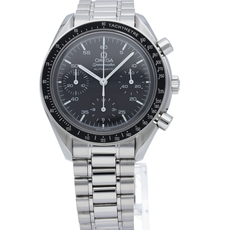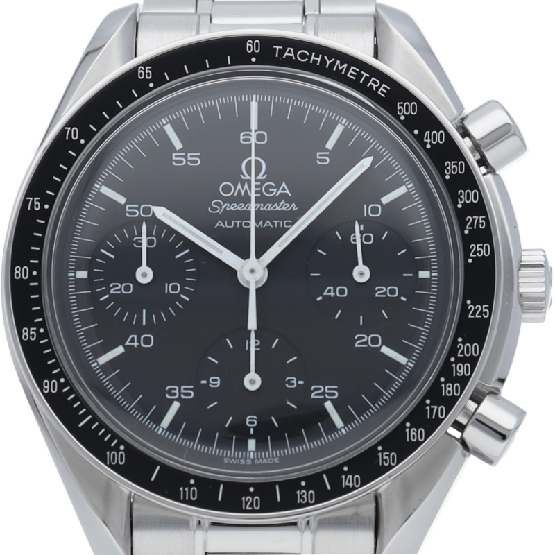 オメガを代表する人気シリーズ「スピードマスター」。プラ風防を使用したレトロな雰囲気かつシンプルにまとまったデザインがスタイルを選ばずにご使用いただけます。