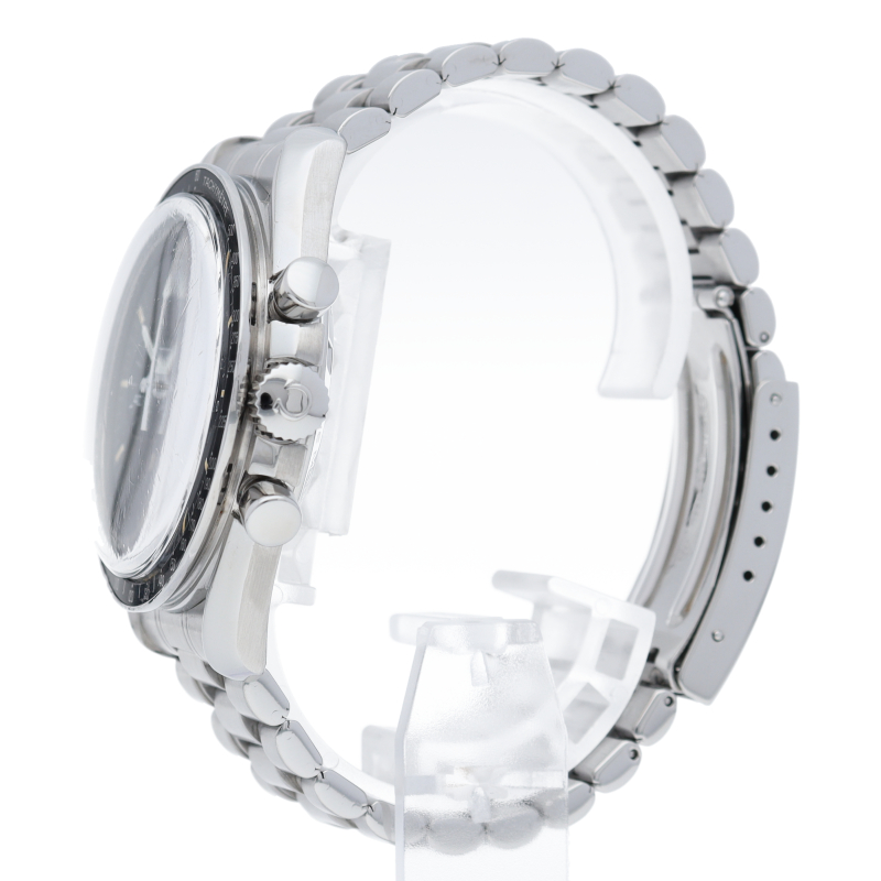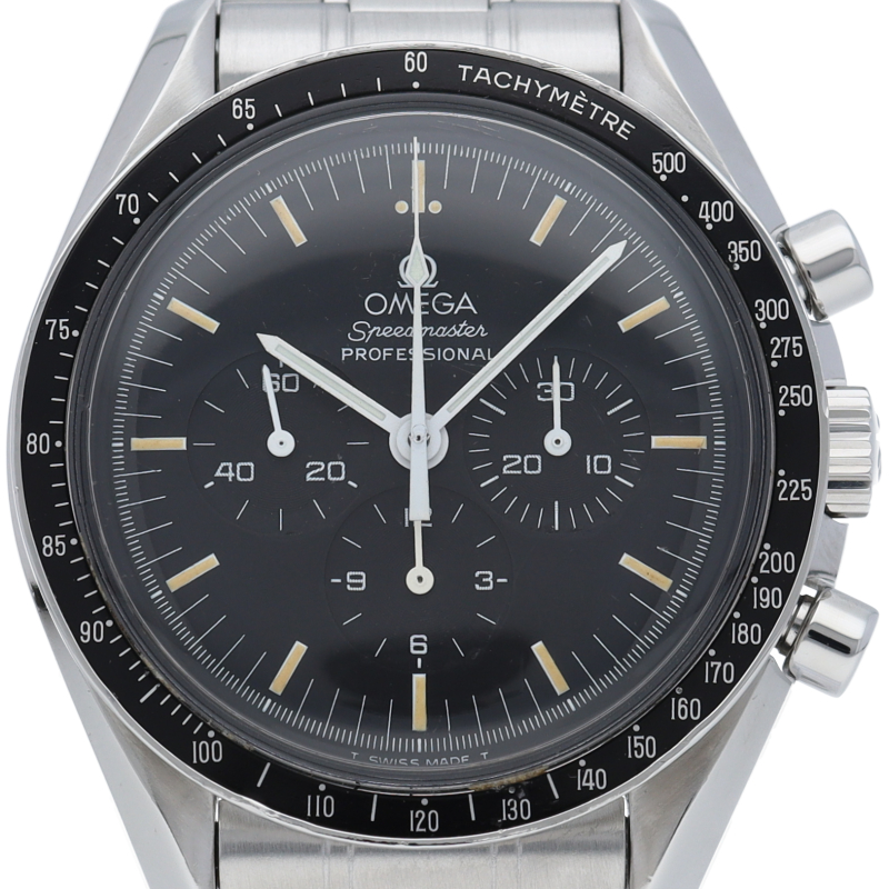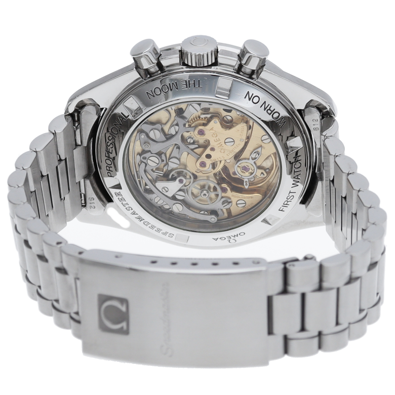 オメガを代表する人気モデルでムーンウォッチとしても有名な1本。シースルーバックから覗ける手巻ムーブメントが特徴的な1本。初期モデルにのみ搭載された金メッキのムーブメントを搭載しております。トリチウム文字盤。Cal.863。