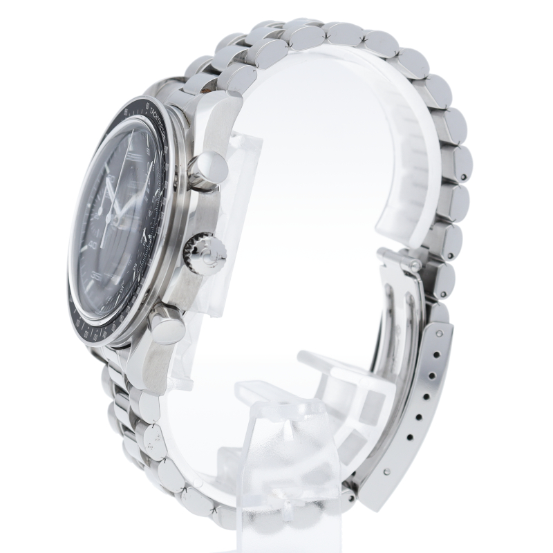 オメガを代表する人気シリーズ「スピードマスター」。プラ風防を使用したレトロな雰囲気かつシンプルにまとまったデザインがスタイルを選ばずにご使用いただけます。