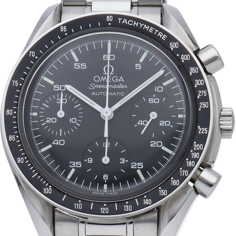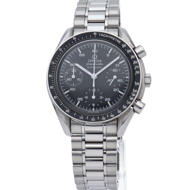 オメガを代表する人気シリーズ「スピードマスター」。プラ風防を使用したレトロな雰囲気かつシンプルにまとまったデザインがスタイルを選ばずにご使用いただけます。
