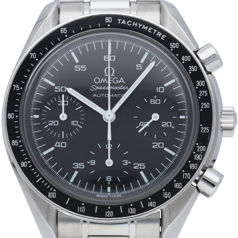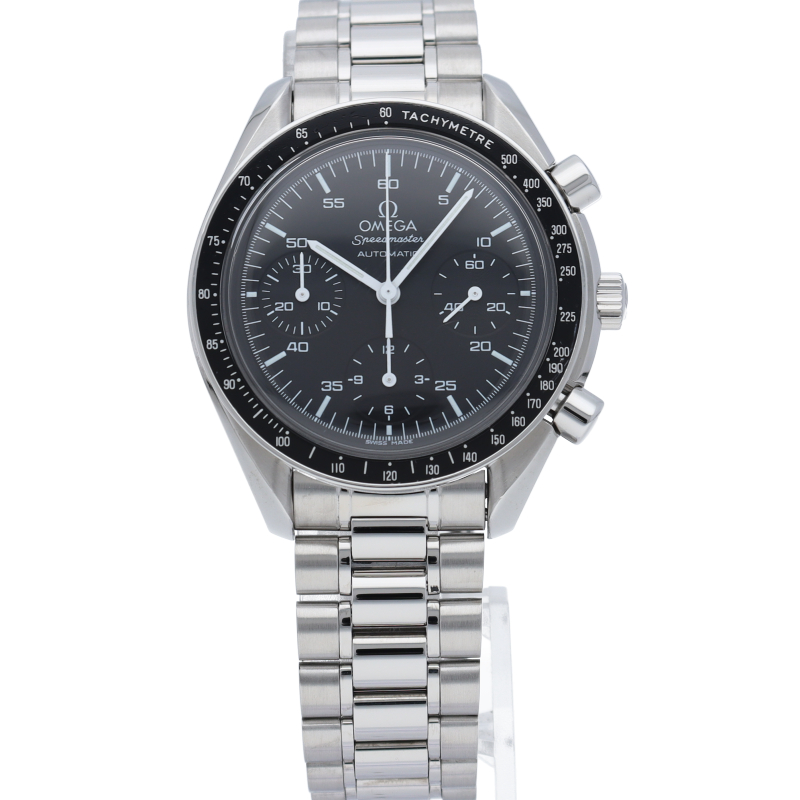 オメガを代表する人気シリーズ「スピードマスター」。プラ風防を使用したレトロな雰囲気かつシンプルにまとまったデザインがスタイルを選ばずにご使用いただけます。