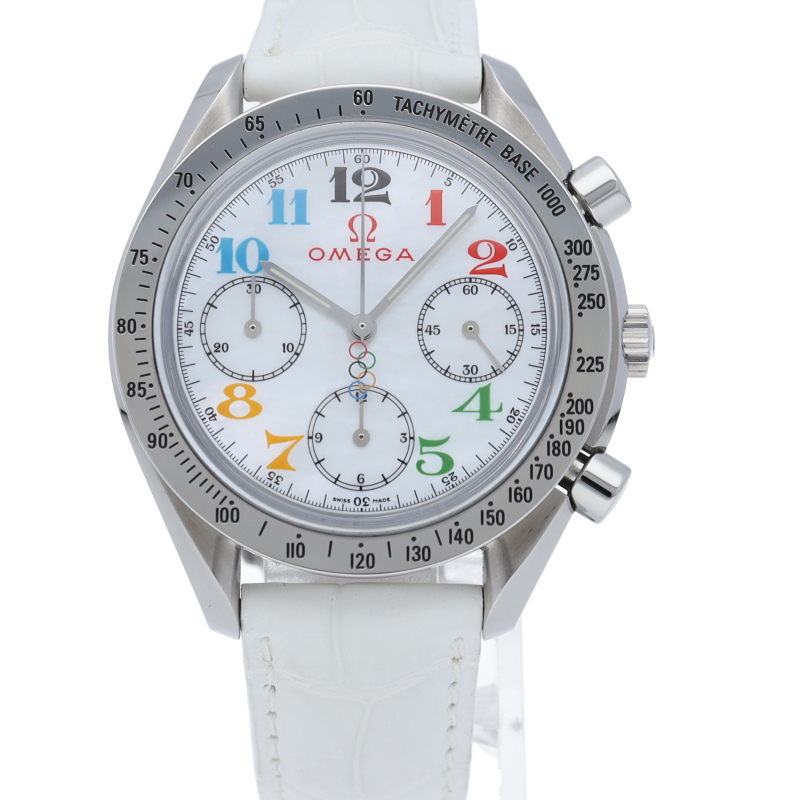 ホワイトマザーオブパール文字盤にオリンピックカラーのアラビア数字が印象的なスピードマスター オリンピック タイムレス コレクション。トリノオリンピック限定モデル。1932年大会以来、オリンピックの公式ウォッチを手掛けてきたオメガの歴史が感じられる一本です。
