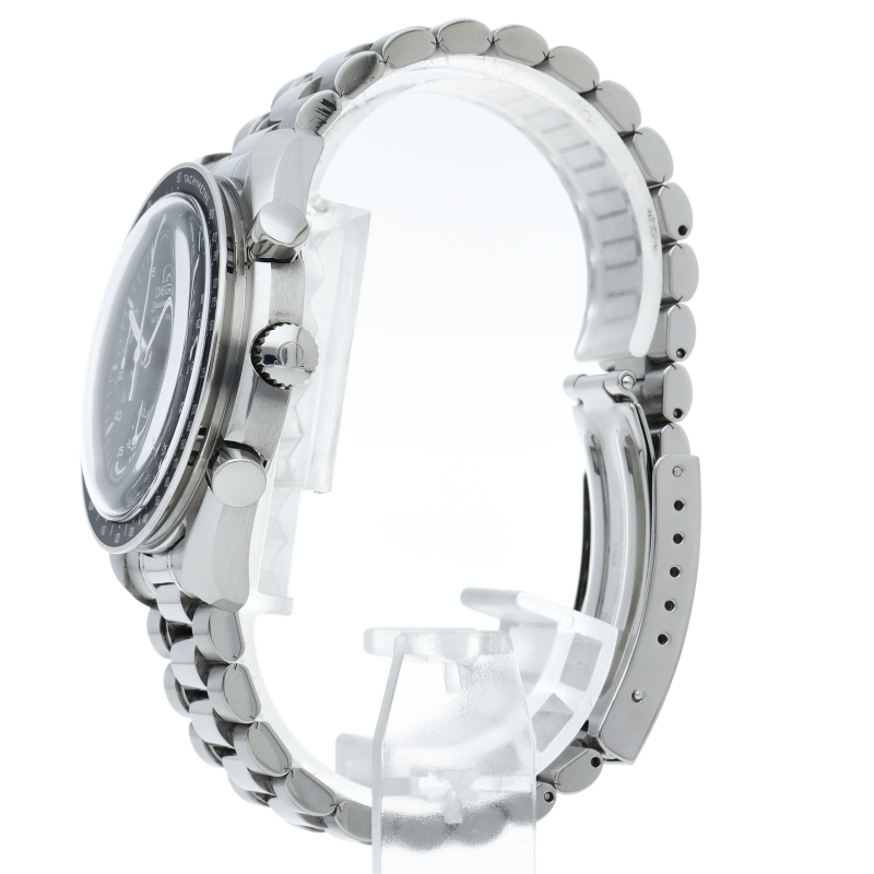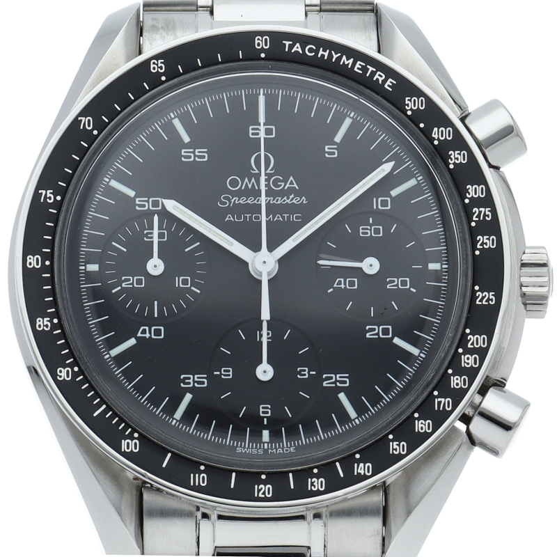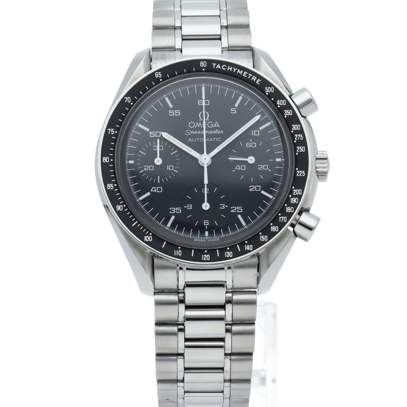 オメガを代表する人気シリーズ「スピードマスター」。プラ風防を使用したレトロな雰囲気かつシンプルにまとまったデザインがスタイルを選ばずにご使用いただけます。