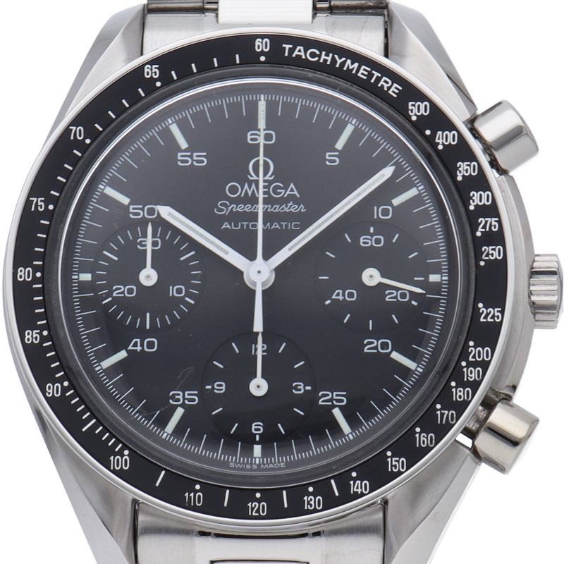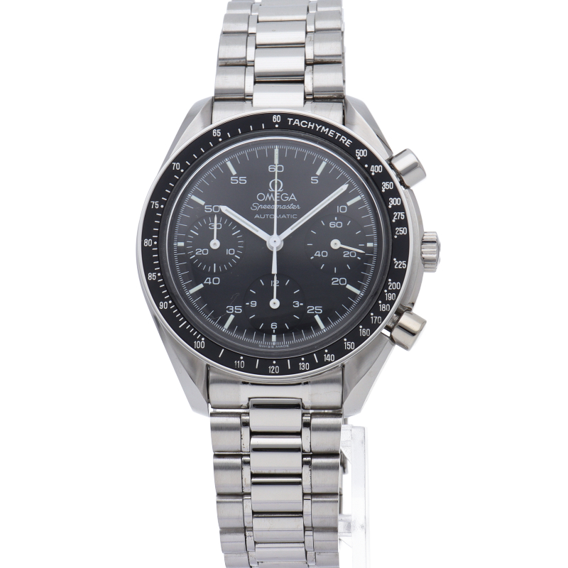 オメガを代表する人気シリーズ「スピードマスター」。プラ風防を使用したレトロな雰囲気かつシンプルにまとまったデザインがスタイルを選ばずにご使用いただけます。