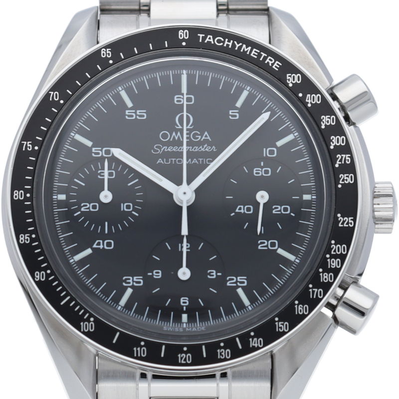 オメガを代表する人気シリーズ「スピードマスター」。プラ風防を使用したレトロな雰囲気かつシンプルにまとまったデザインがスタイルを選ばずにご使用いただけます。