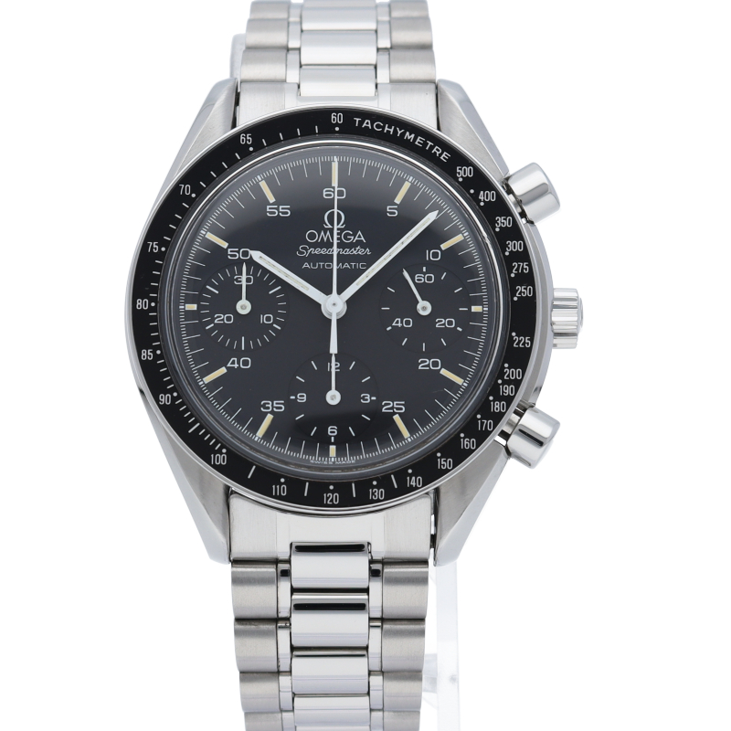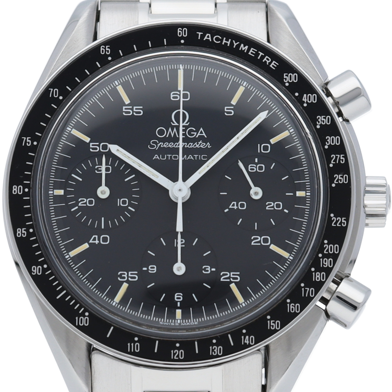 オメガを代表する人気シリーズ「スピードマスター」。プラ風防を使用したレトロな雰囲気かつシンプルにまとまったデザインがスタイルを選ばずにご使用いただけます。