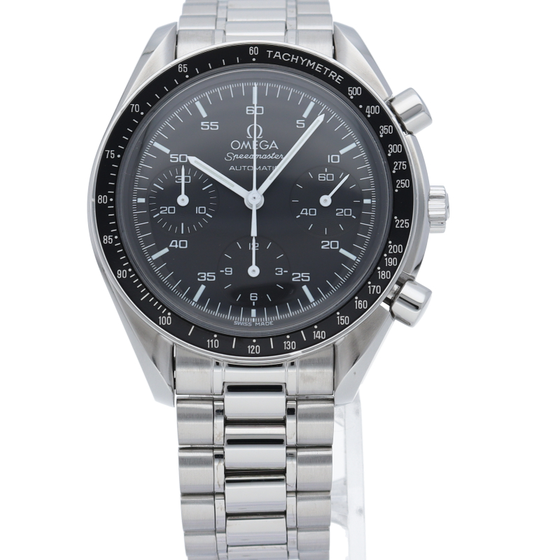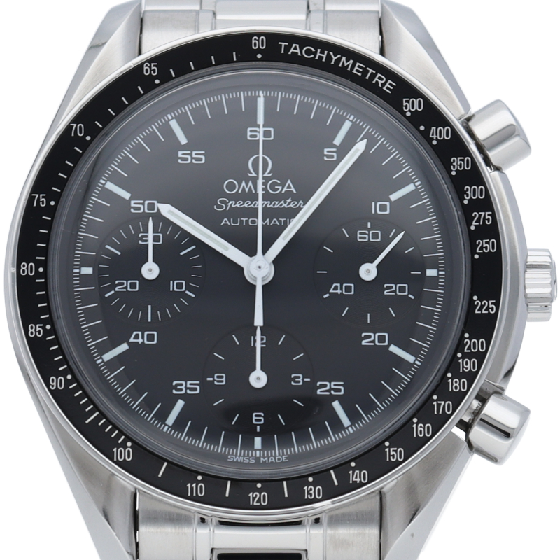 オメガを代表する人気シリーズ「スピードマスター」。プラ風防を使用したレトロな雰囲気かつシンプルにまとまったデザインがスタイルを選ばずにご使用いただけます。