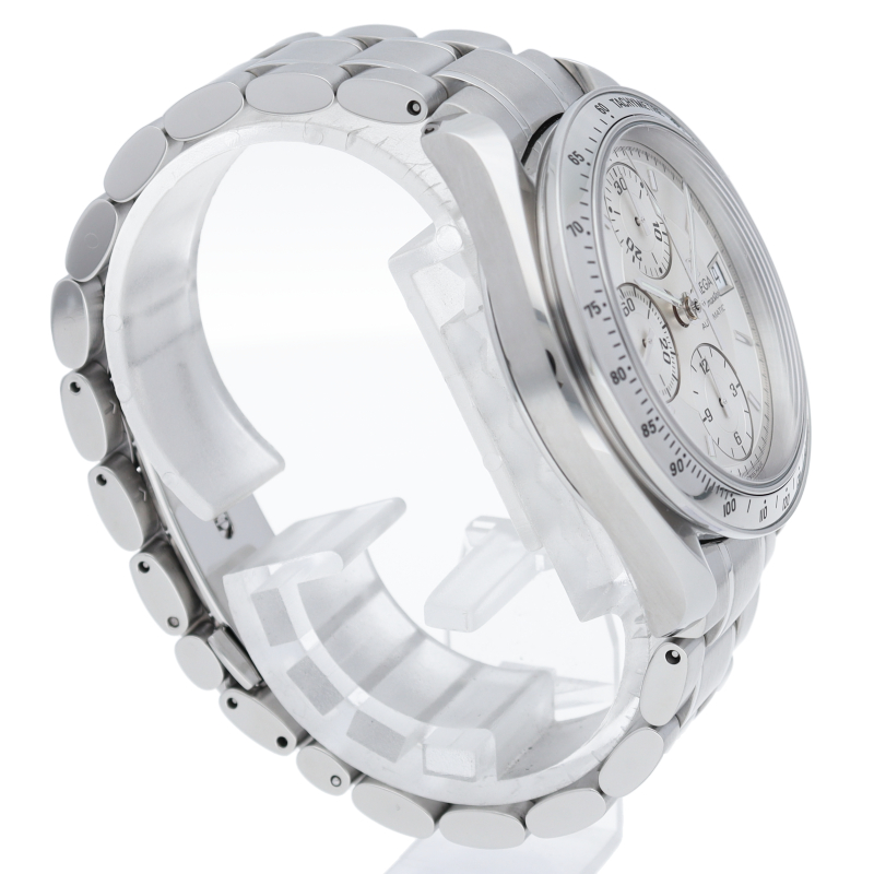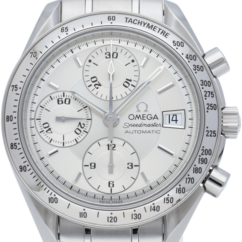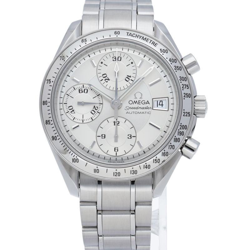 オメガの代表的な人気シリーズ「スピードマスター・デイト」。クロノグラフ・デイト表示機能付きと便利で実用性のある1本です。