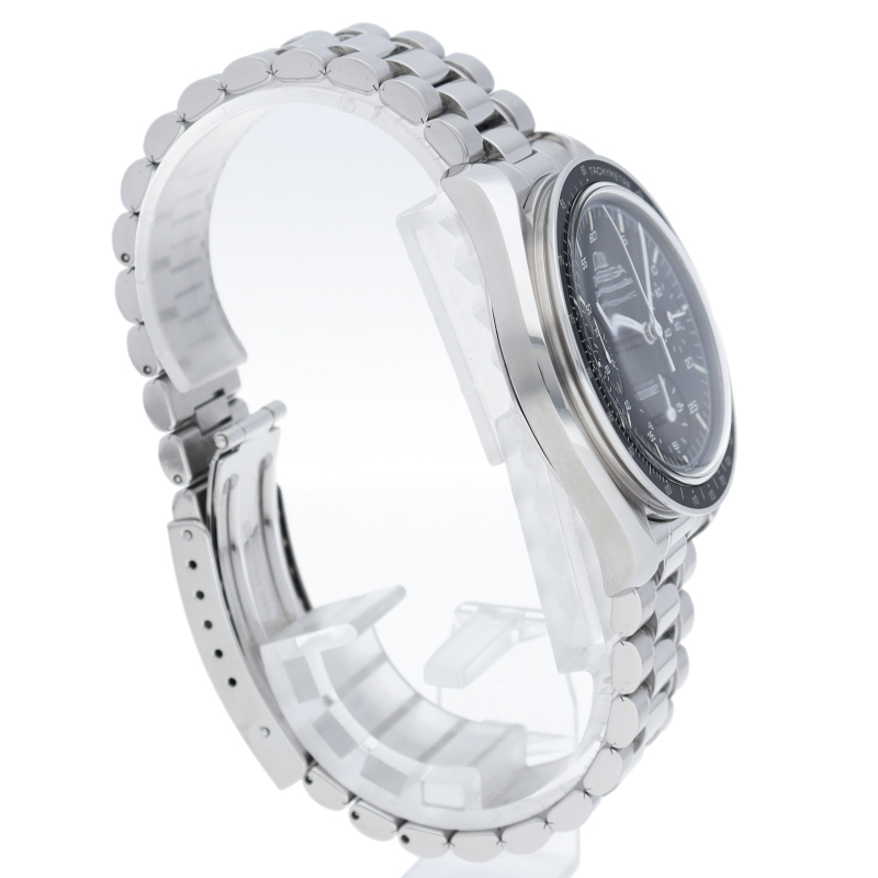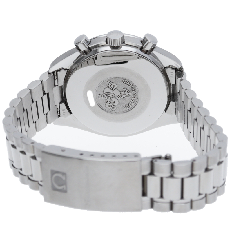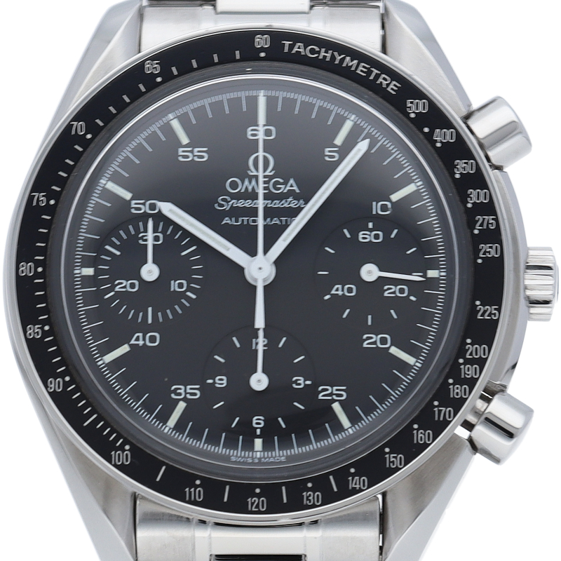オメガを代表する人気シリーズ「スピードマスター」。プラ風防を使用したレトロな雰囲気かつシンプルにまとまったデザインがスタイルを選ばずにご使用いただけます。