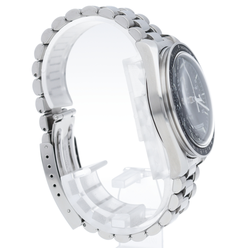 オメガを代表する人気シリーズ「スピードマスター」。プラ風防を使用したレトロな雰囲気かつシンプルにまとまったデザインがスタイルを選ばずにご使用いただけます。