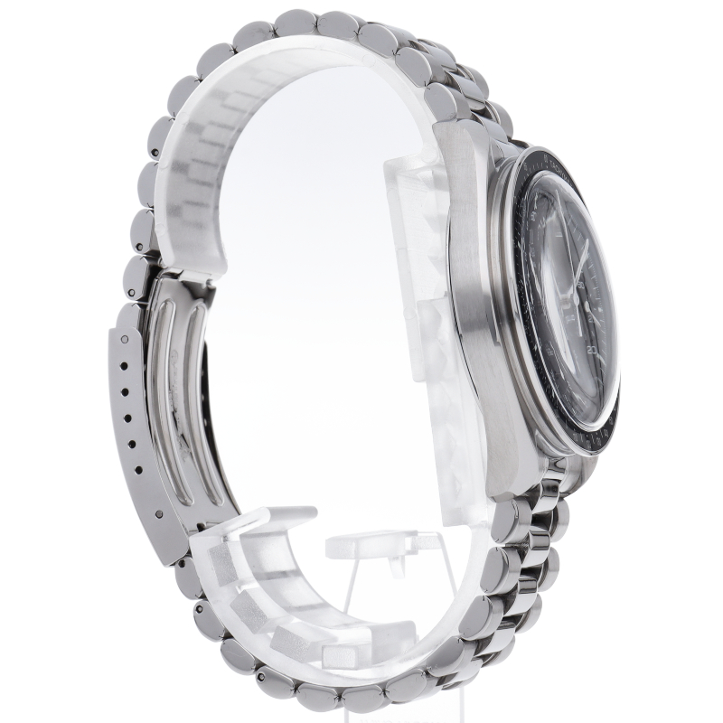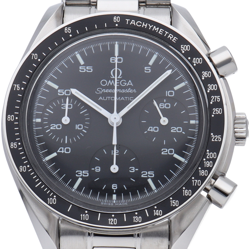 オメガを代表する人気シリーズ「スピードマスター」。プラ風防を使用したレトロな雰囲気かつシンプルにまとまったデザインがスタイルを選ばずにご使用いただけます。