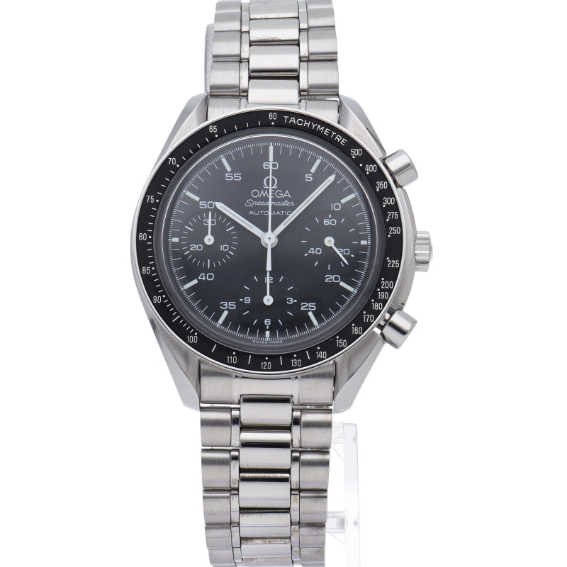 オメガを代表する人気シリーズ「スピードマスター」。プラ風防を使用したレトロな雰囲気かつシンプルにまとまったデザインがスタイルを選ばずにご使用いただけます。