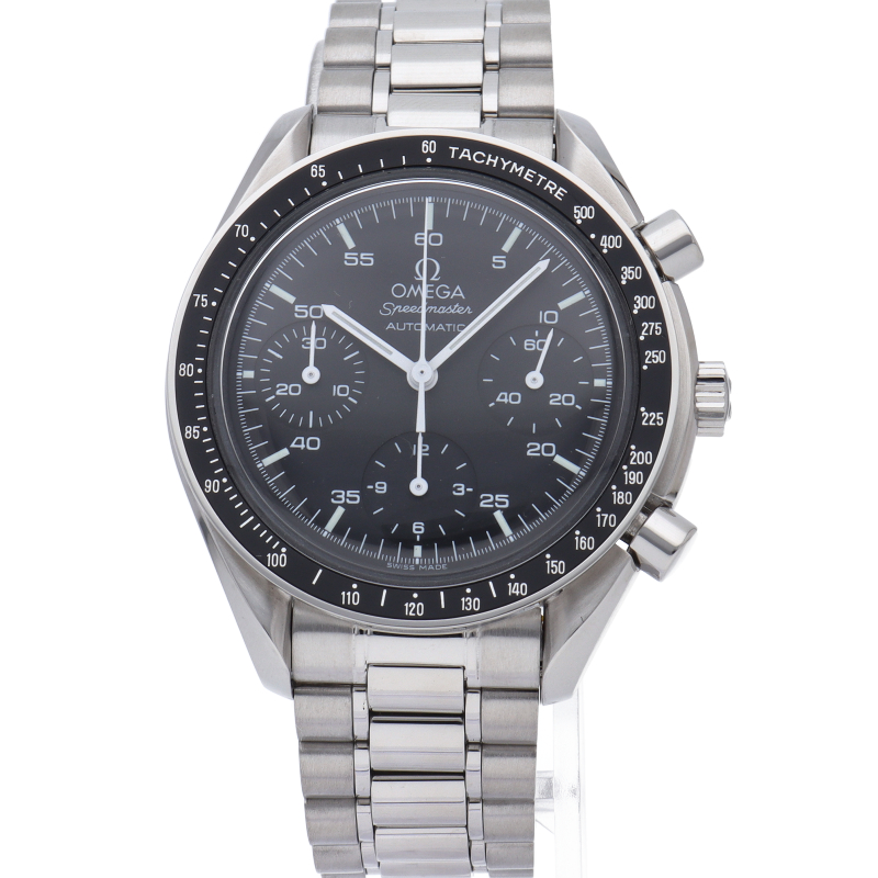 オメガを代表する人気シリーズ「スピードマスター」。プラ風防を使用したレトロな雰囲気かつシンプルにまとまったデザインがスタイルを選ばずにご使用いただけます。