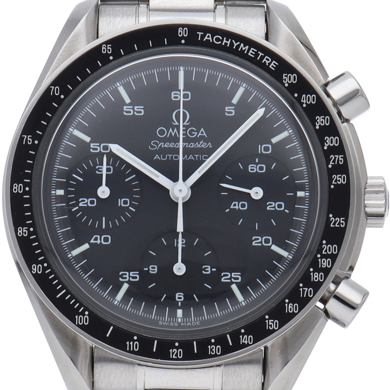 オメガを代表する人気シリーズ「スピードマスター」。プラ風防を使用したレトロな雰囲気かつシンプルにまとまったデザインがスタイルを選ばずにご使用いただけます。