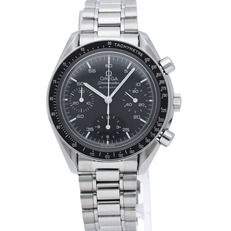 オメガを代表する人気シリーズ「スピードマスター」。プラ風防を使用したレトロな雰囲気かつシンプルにまとまったデザインがスタイルを選ばずにご使用いただけます。