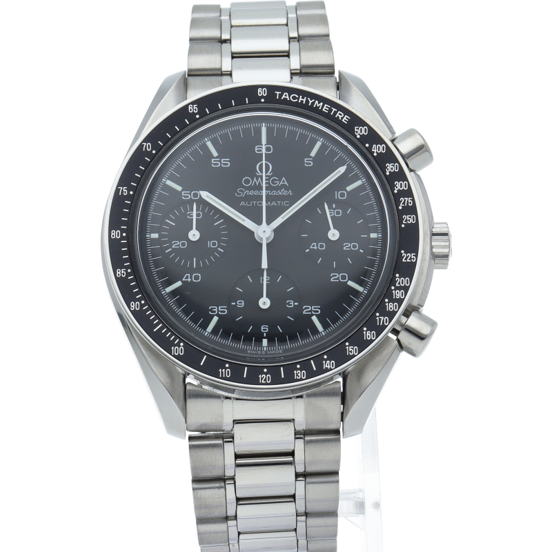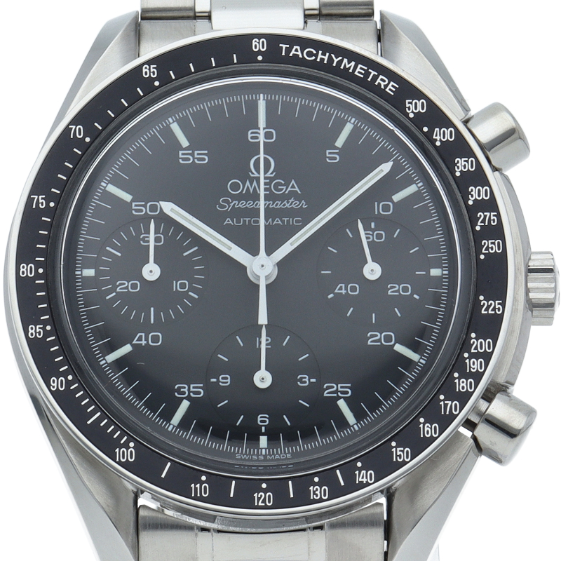 オメガを代表する人気シリーズ「スピードマスター」。プラ風防を使用したレトロな雰囲気かつシンプルにまとまったデザインがスタイルを選ばずにご使用いただけます。