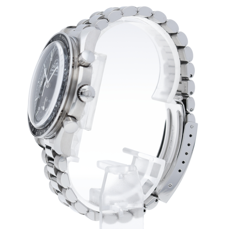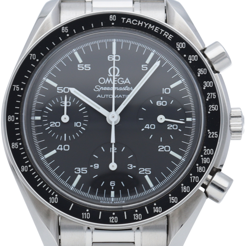 オメガを代表する人気シリーズ「スピードマスター」。プラ風防を使用したレトロな雰囲気かつシンプルにまとまったデザインがスタイルを選ばずにご使用いただけます。