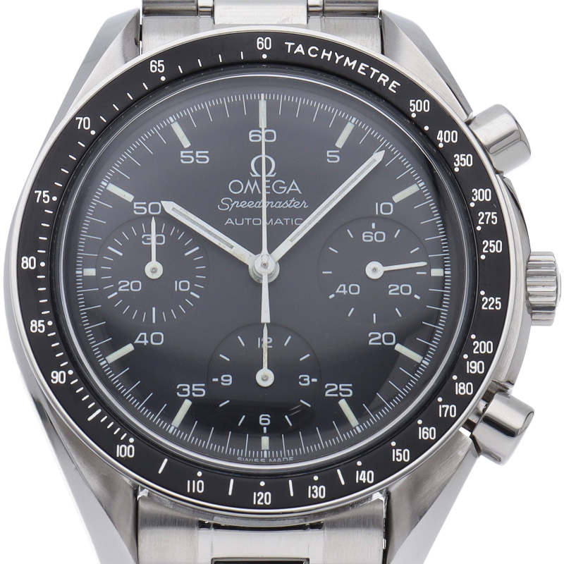 オメガを代表する人気モデルでムーンウォッチとしても有名な1本。プラ風防を使用したレトロな雰囲気と手巻ムーブメントが逆に新鮮な1本。クロノグラフ機能付。