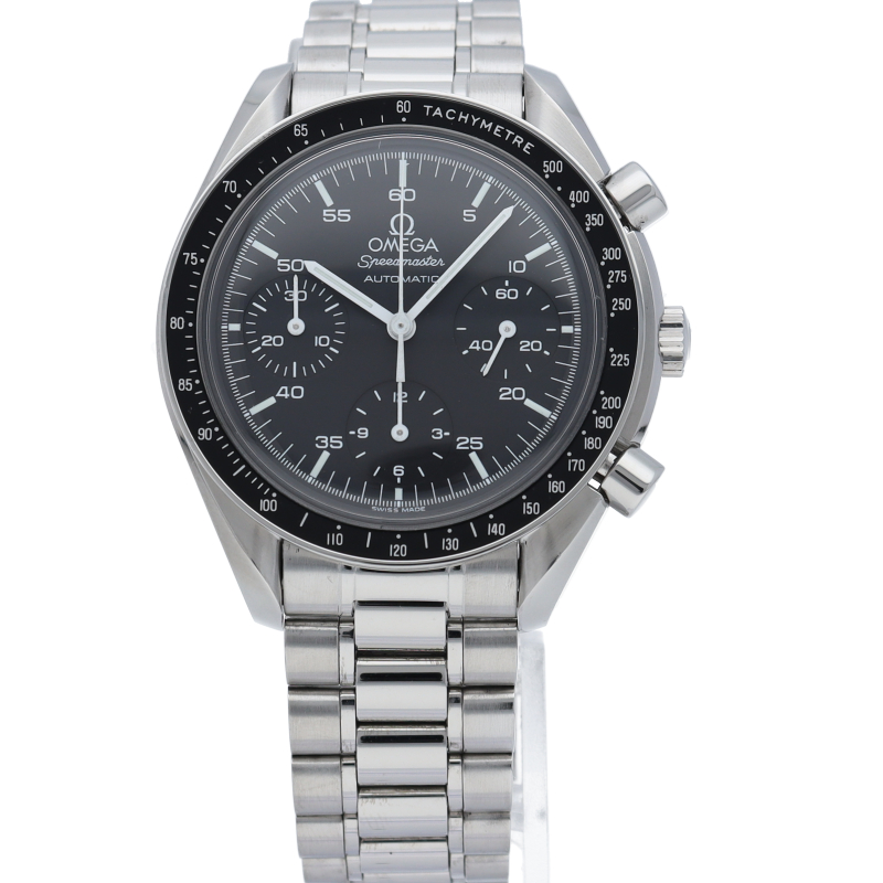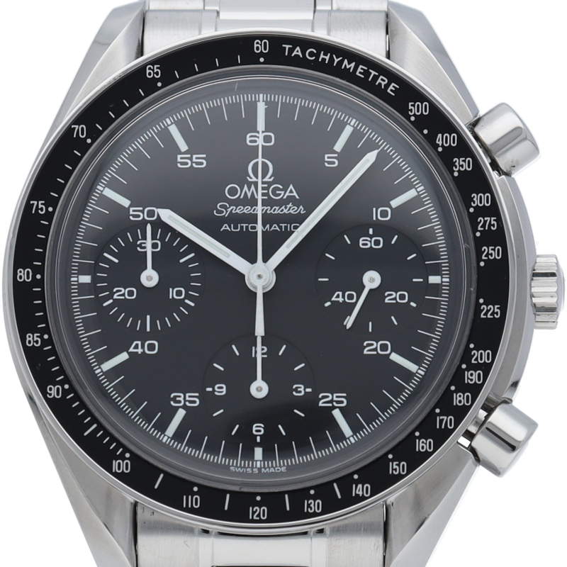 オメガを代表する人気シリーズ「スピードマスター」。プラ風防を使用したレトロな雰囲気かつシンプルにまとまったデザインがスタイルを選ばずにご使用いただけます。