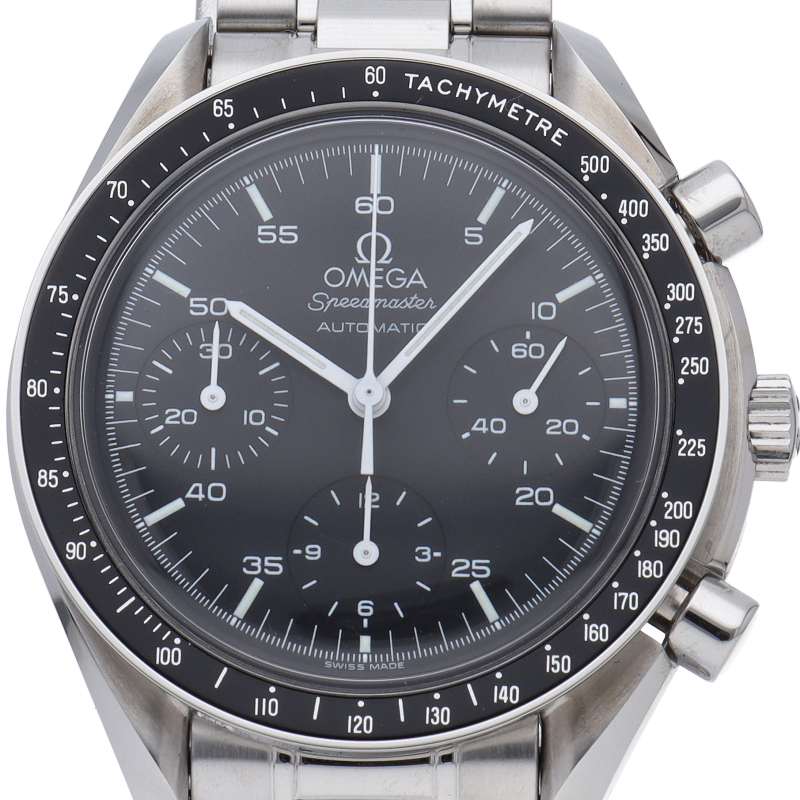 オメガを代表する人気シリーズ「スピードマスター」。プラ風防を使用したレトロな雰囲気かつシンプルにまとまったデザインがスタイルを選ばずにご使用いただけます。