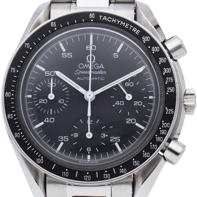 オメガを代表する人気シリーズ「スピードマスター」。プラ風防を使用したレトロな雰囲気かつシンプルにまとまったデザインがスタイルを選ばずにご使用いただけます。