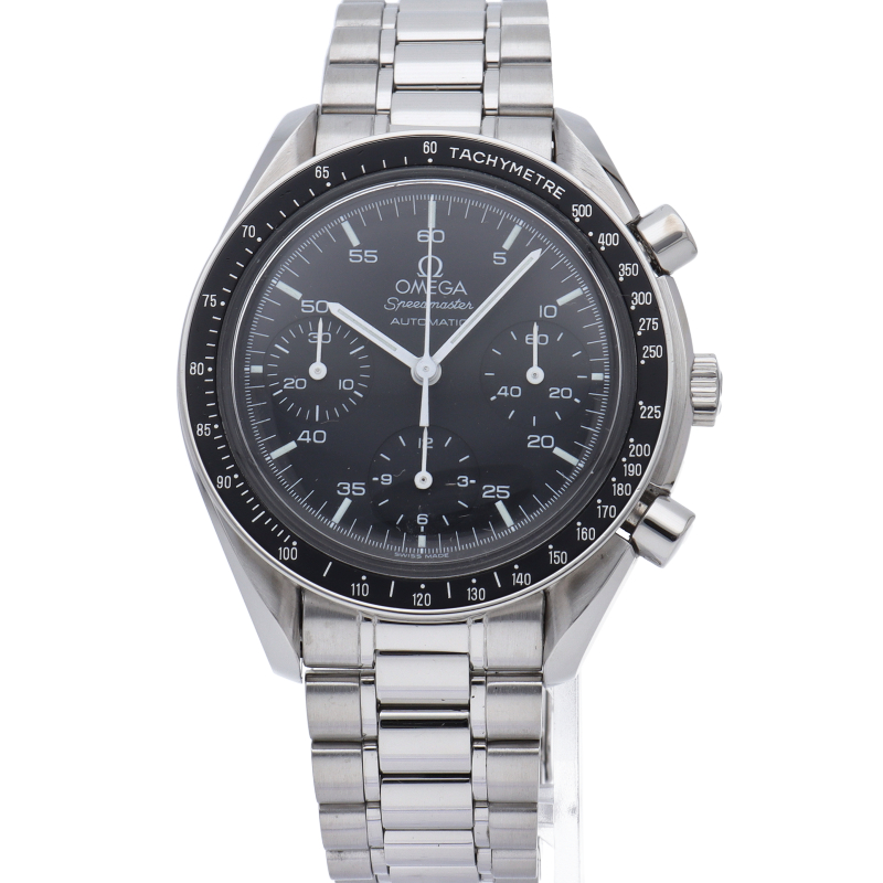 オメガを代表する人気シリーズ「スピードマスター」。プラ風防を使用したレトロな雰囲気かつシンプルにまとまったデザインがスタイルを選ばずにご使用いただけます。