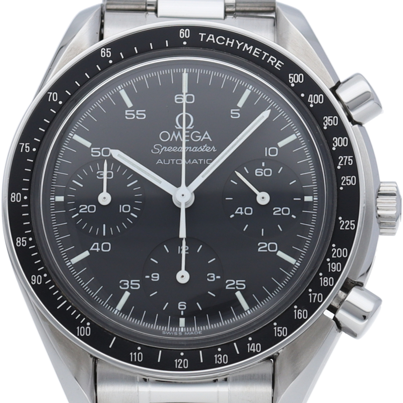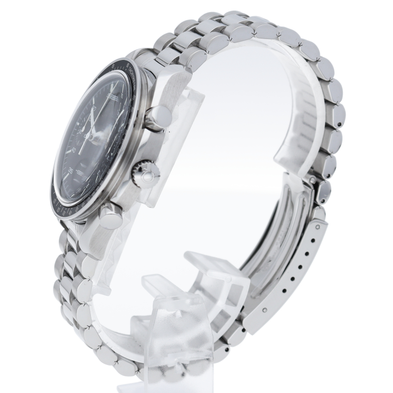 オメガを代表する人気シリーズ「スピードマスター」。プラ風防を使用したレトロな雰囲気かつシンプルにまとまったデザインがスタイルを選ばずにご使用いただけます。