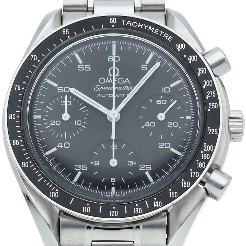 オメガを代表する人気シリーズ「スピードマスター」。プラ風防を使用したレトロな雰囲気かつシンプルにまとまったデザインがスタイルを選ばずにご使用いただけます。