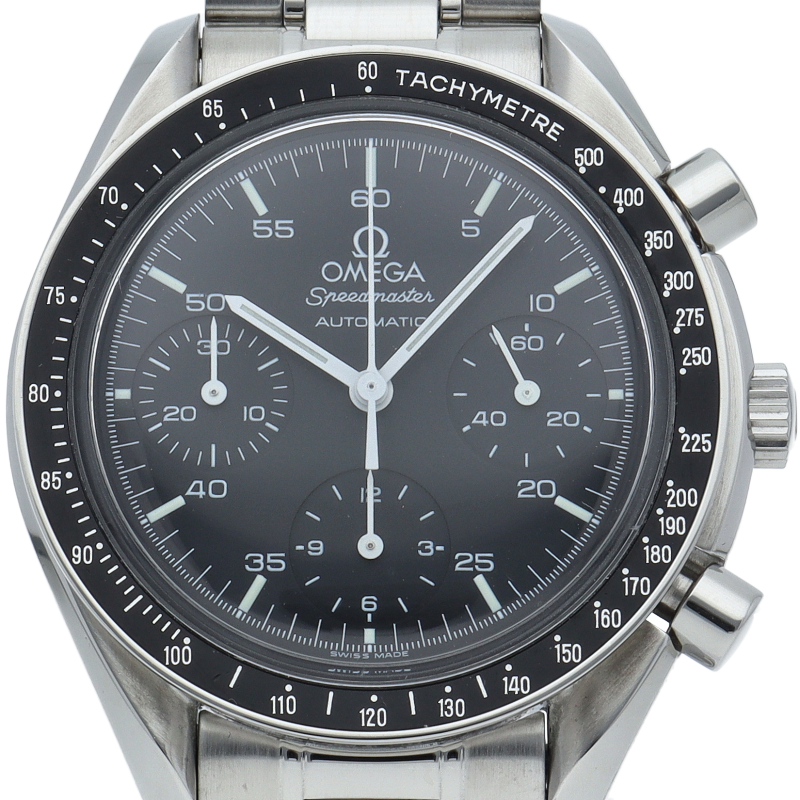 オメガを代表する人気シリーズ「スピードマスター」。プラ風防を使用したレトロな雰囲気かつシンプルにまとまったデザインがスタイルを選ばずにご使用いただけます。