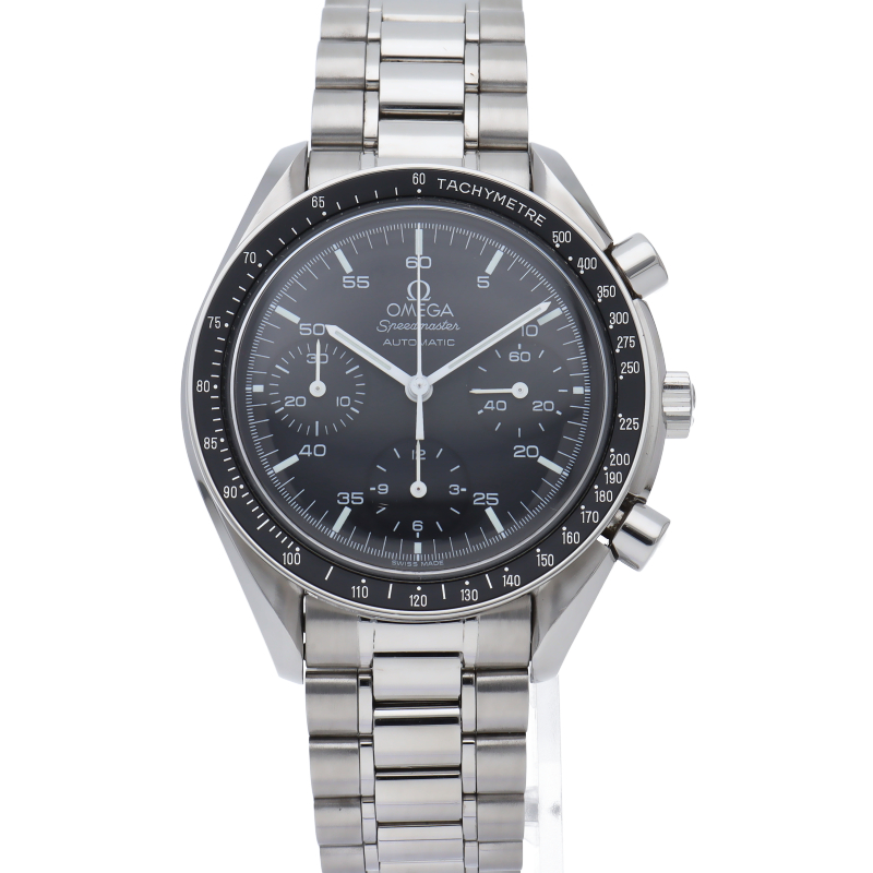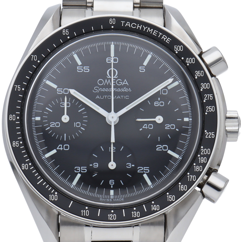 オメガを代表する人気シリーズ「スピードマスター」。プラ風防を使用したレトロな雰囲気かつシンプルにまとまったデザインがスタイルを選ばずにご使用いただけます。