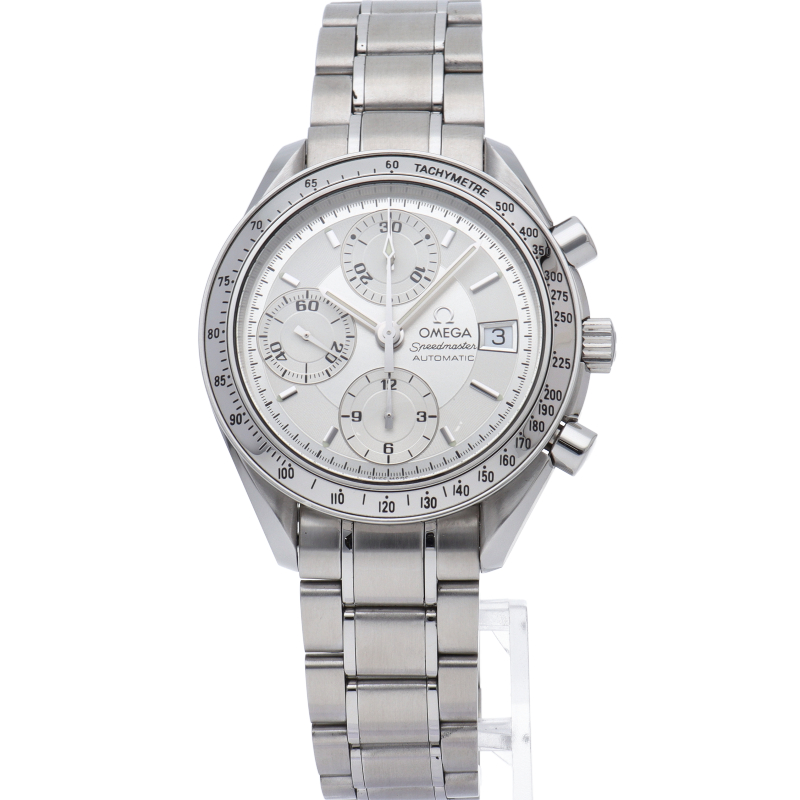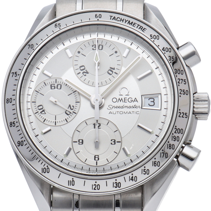 オメガの代表的な人気シリーズ「スピードマスター・デイト」。クロノグラフ・デイト表示機能付きと便利で実用性のある1本です。