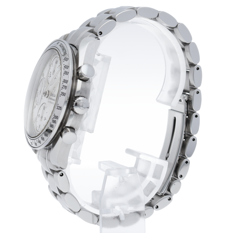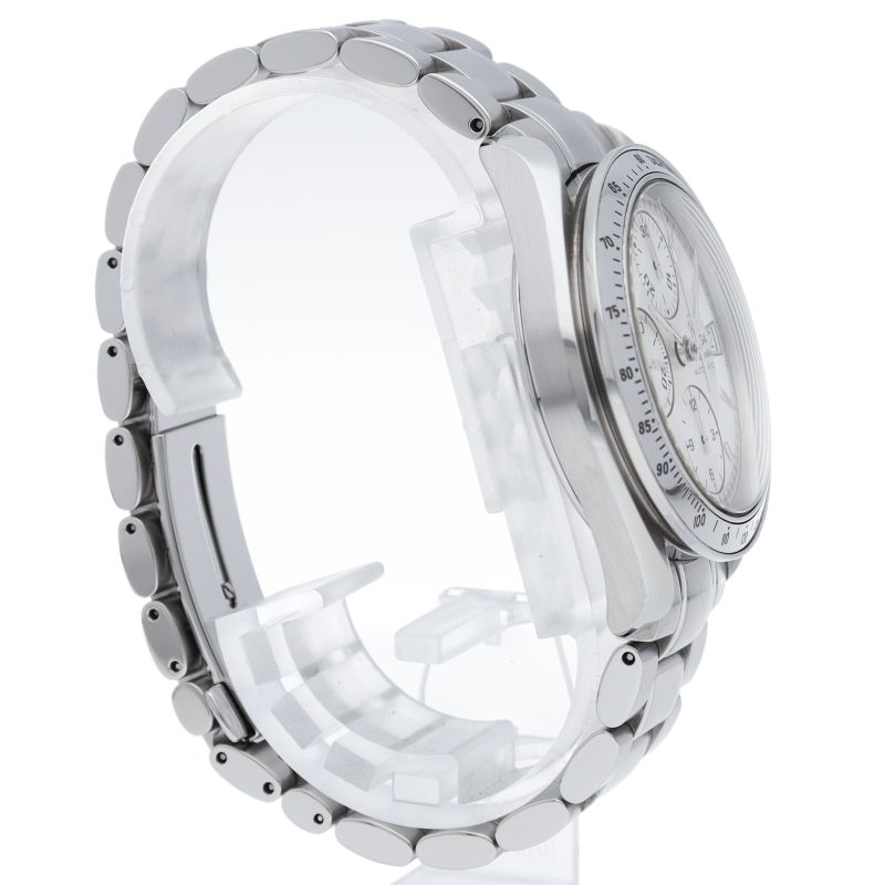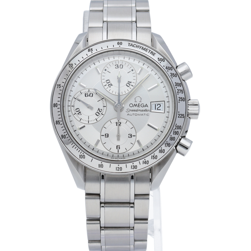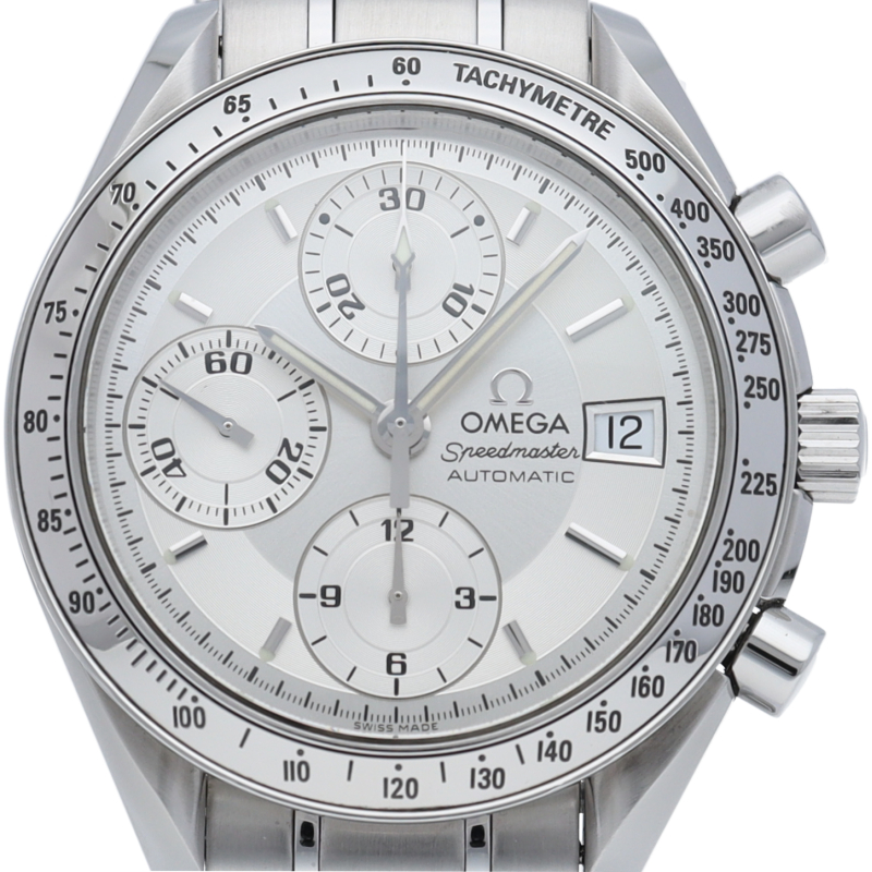 オメガの代表的な人気シリーズ「スピードマスター・デイト」。クロノグラフ・デイト表示機能付きと便利で実用性のある1本です。