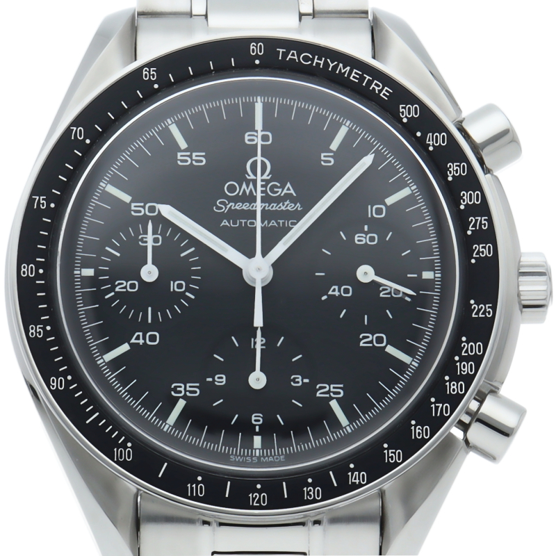 オメガを代表する人気シリーズ「スピードマスター」。プラ風防を使用したレトロな雰囲気かつシンプルにまとまったデザインがスタイルを選ばずにご使用いただけます。