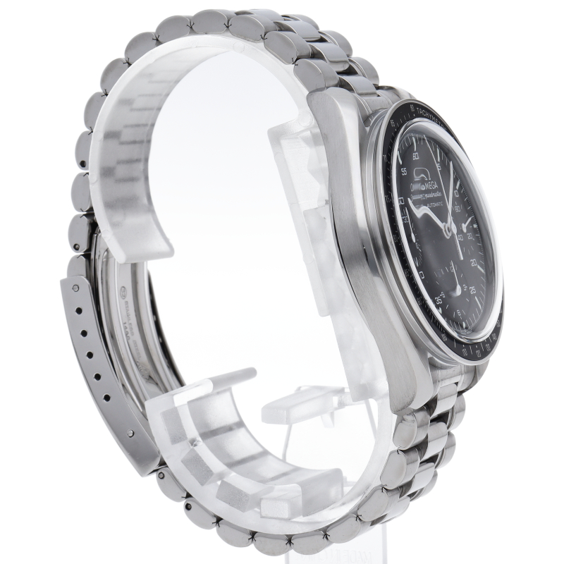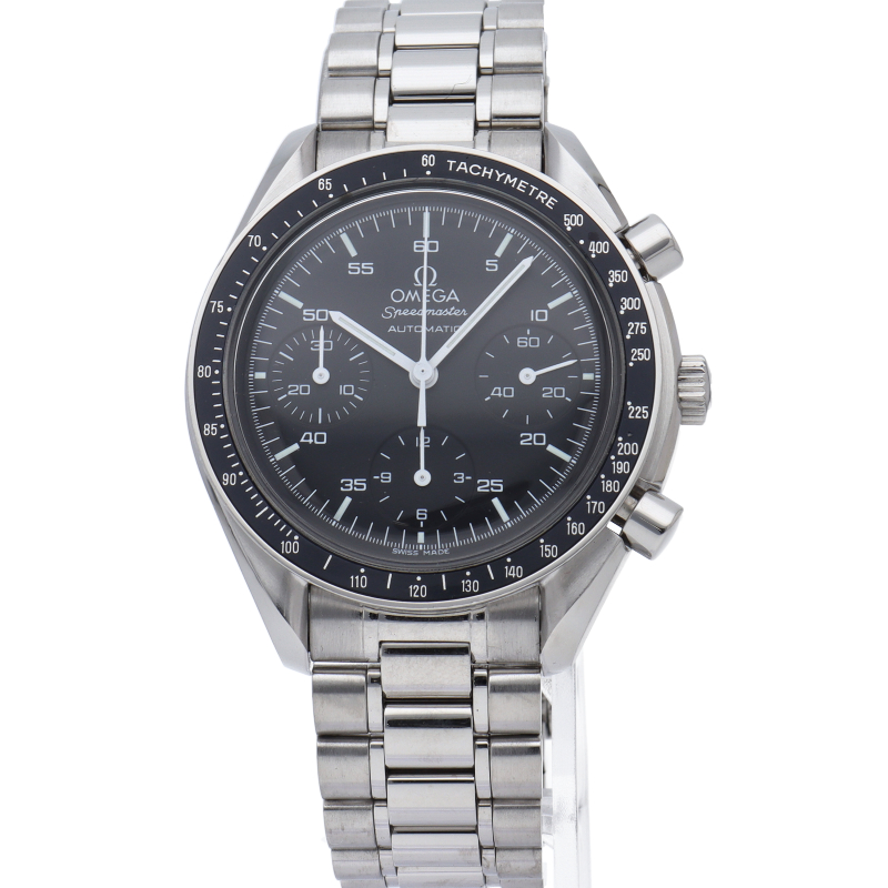 オメガを代表する人気シリーズ「スピードマスター」。プラ風防を使用したレトロな雰囲気かつシンプルにまとまったデザインがスタイルを選ばずにご使用いただけます。