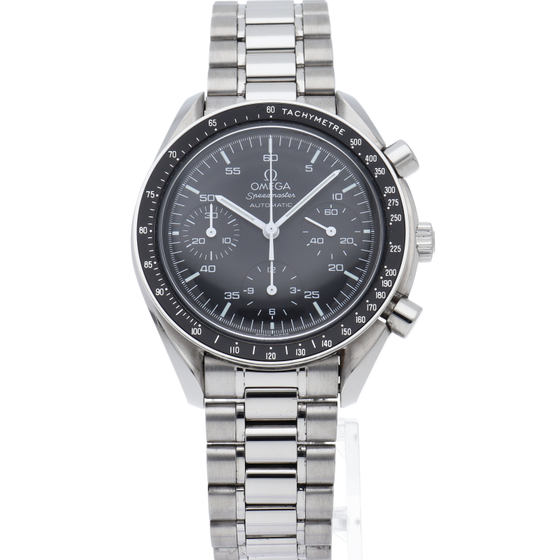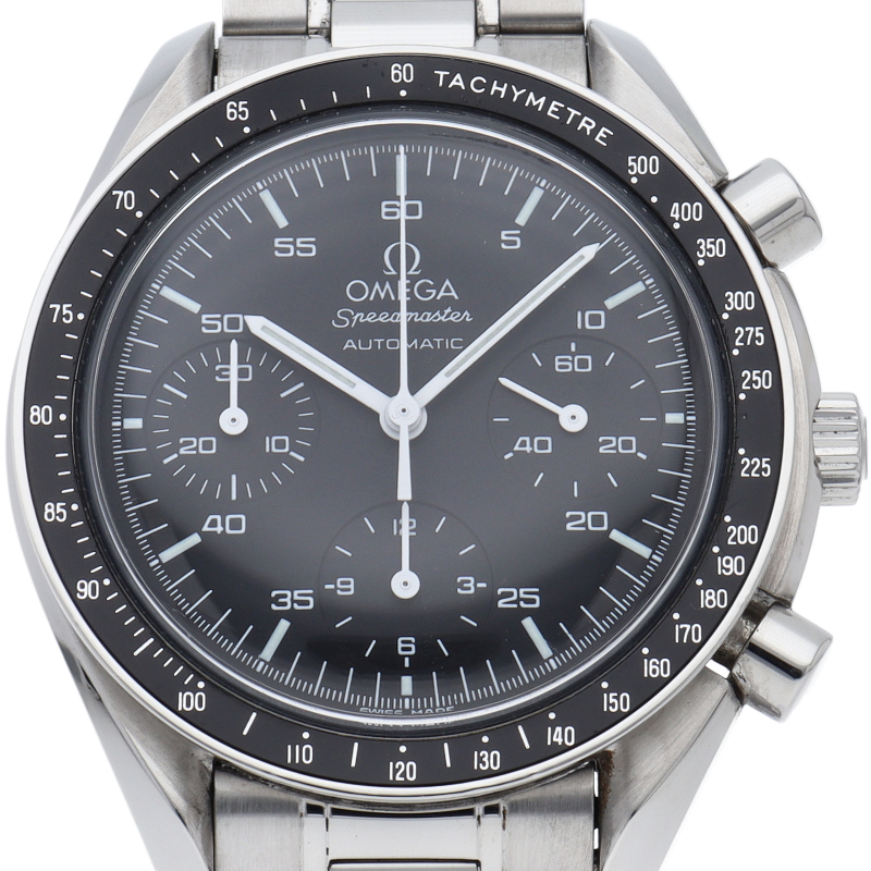 オメガを代表する人気シリーズ「スピードマスター」。プラ風防を使用したレトロな雰囲気かつシンプルにまとまったデザインがスタイルを選ばずにご使用いただけます。