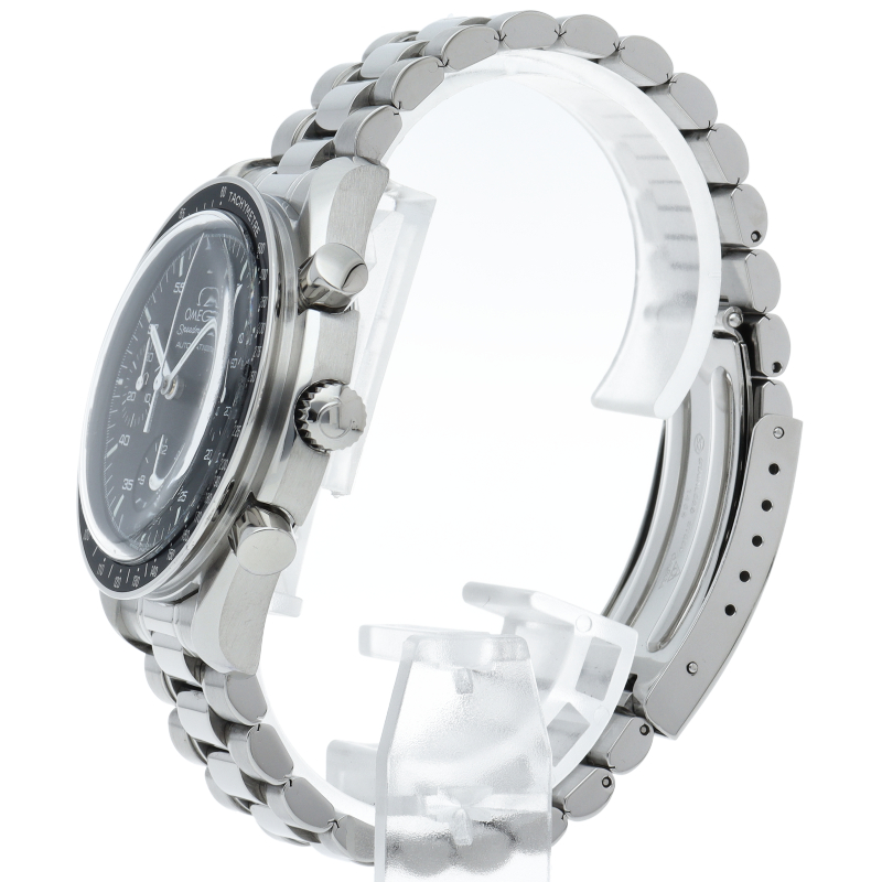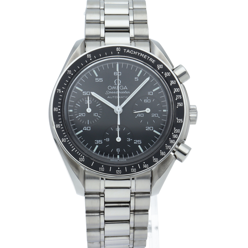 オメガを代表する人気シリーズ「スピードマスター」。プラ風防を使用したレトロな雰囲気かつシンプルにまとまったデザインがスタイルを選ばずにご使用いただけます。