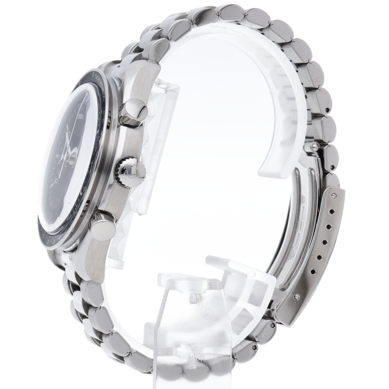 オメガを代表する人気シリーズ「スピードマスター」。プラ風防を使用したレトロな雰囲気かつシンプルにまとまったデザインがスタイルを選ばずにご使用いただけます。
