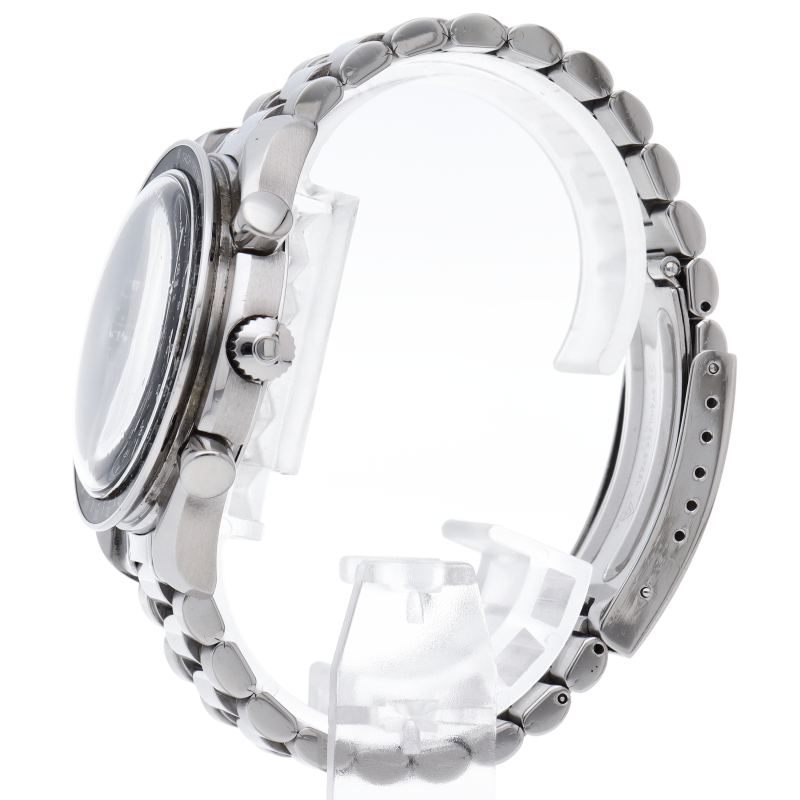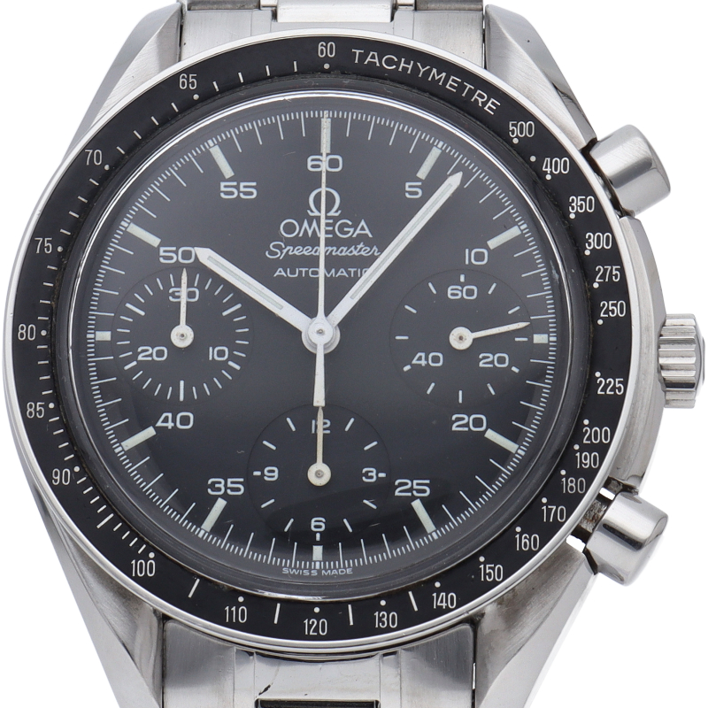 オメガを代表する人気シリーズ「スピードマスター」。プラ風防を使用したレトロな雰囲気かつシンプルにまとまったデザインがスタイルを選ばずにご使用いただけます。
